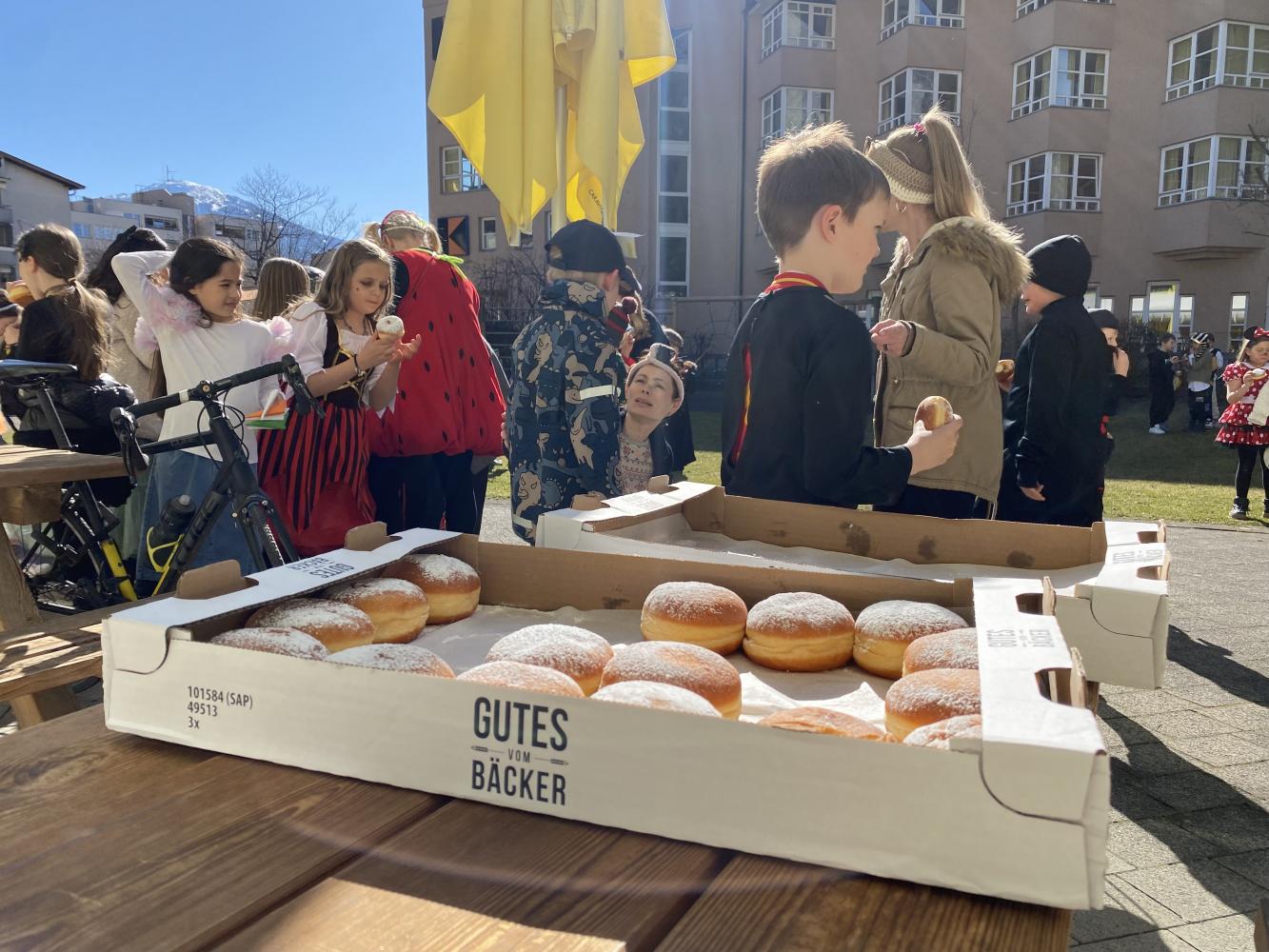 Bunte Kostüme, fröhliche Musik und ausgelassene Stimmung – unser Faschingsfest war ein voller Erfolg! Kinder und Lehrer:innen feierten gemeinsam mit lustigen Spielen, Tänzen und vielen Überraschungen. Natürlich durfte auch eine süße Stärkung nicht fehlen – leckere Krapfen versüßten uns den Tag.