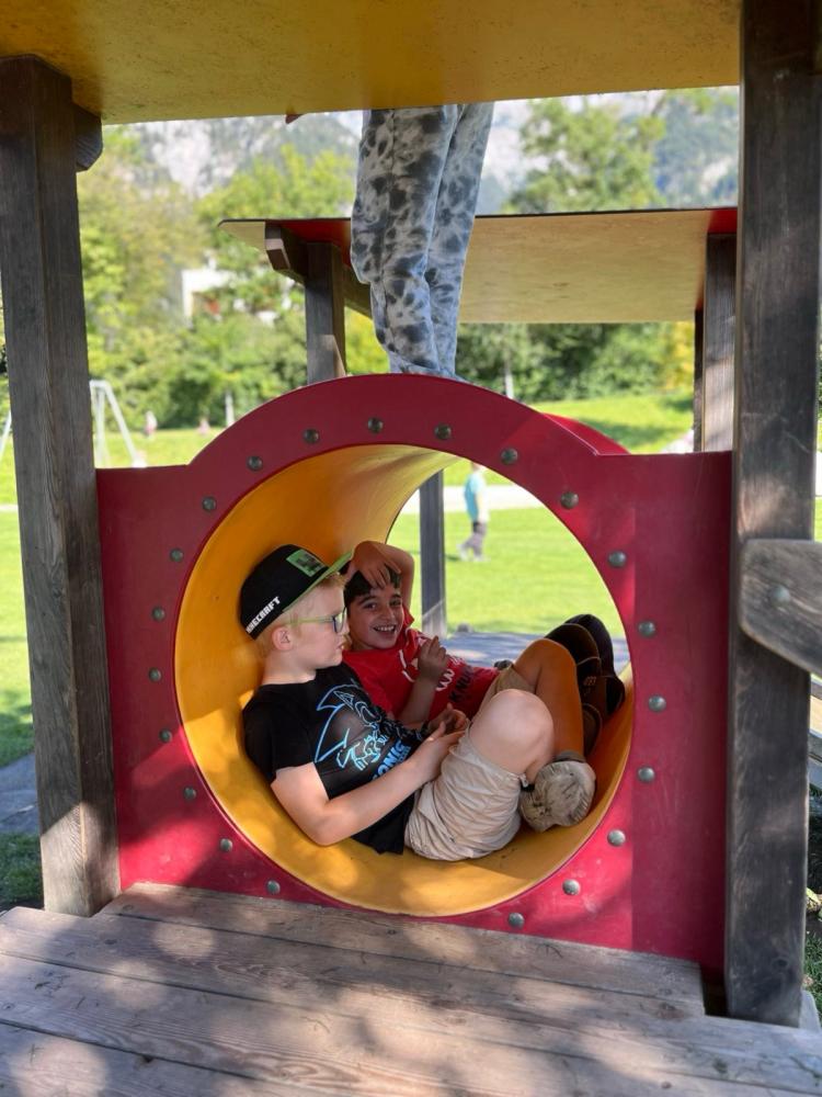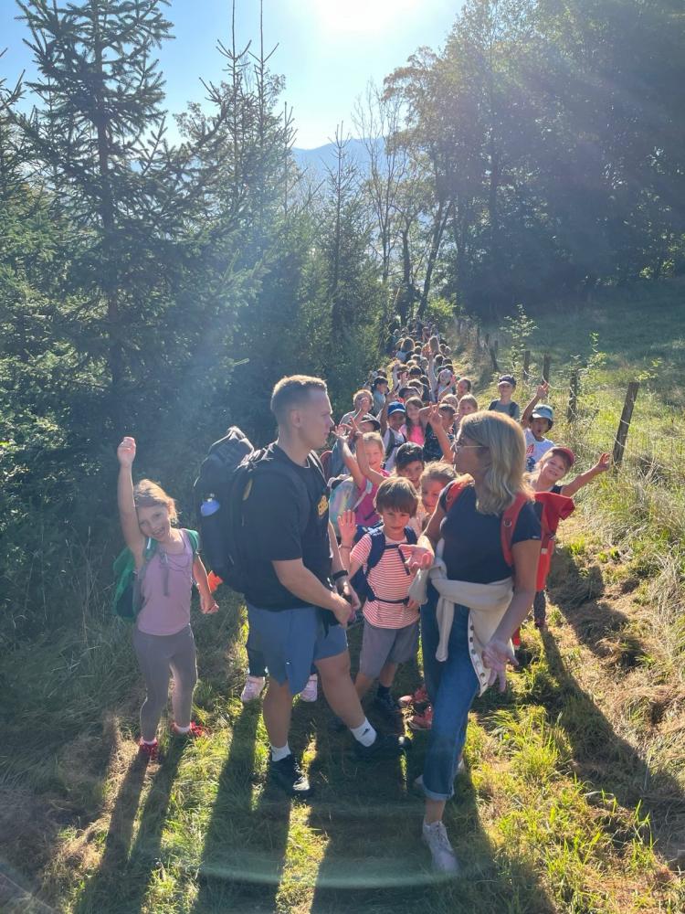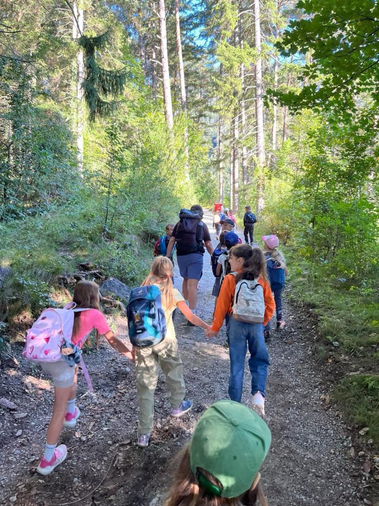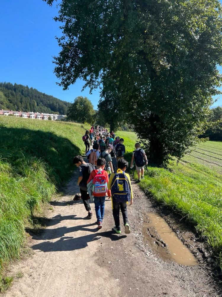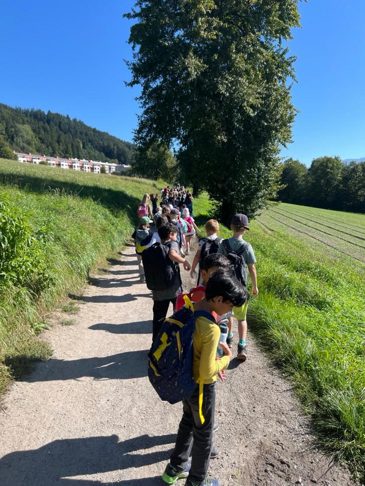 An unserem gemeinsamen Wandertag machten sich alle Klassen auf den Weg über den Kerschbuchhofweg zum Kranebitter Spielplatz. Dort angekommen, stärkten sich die Schülerinnen und Schüler bei einer gemeinsamen Jause. Anschließend blieb noch genügend Zeit zum Spielen, Toben und Zusammensein. Zum Abschluss wanderten alle gemeinsam wieder zurück zur Schule - ein schöner Tag voller Bewegung, Gemeinschaft und Spaß!