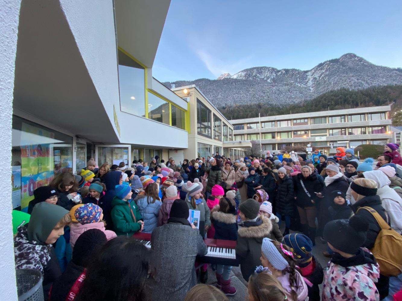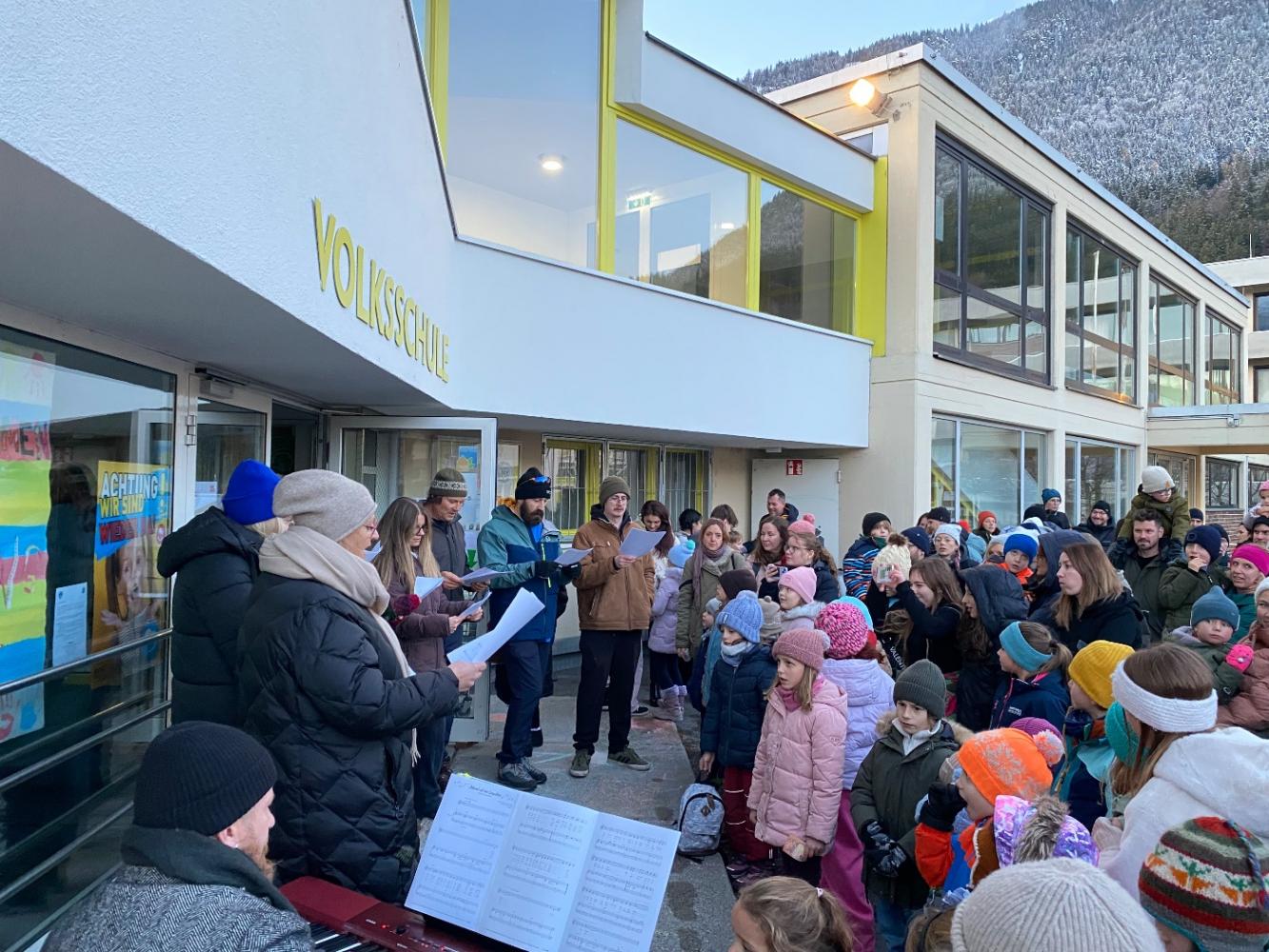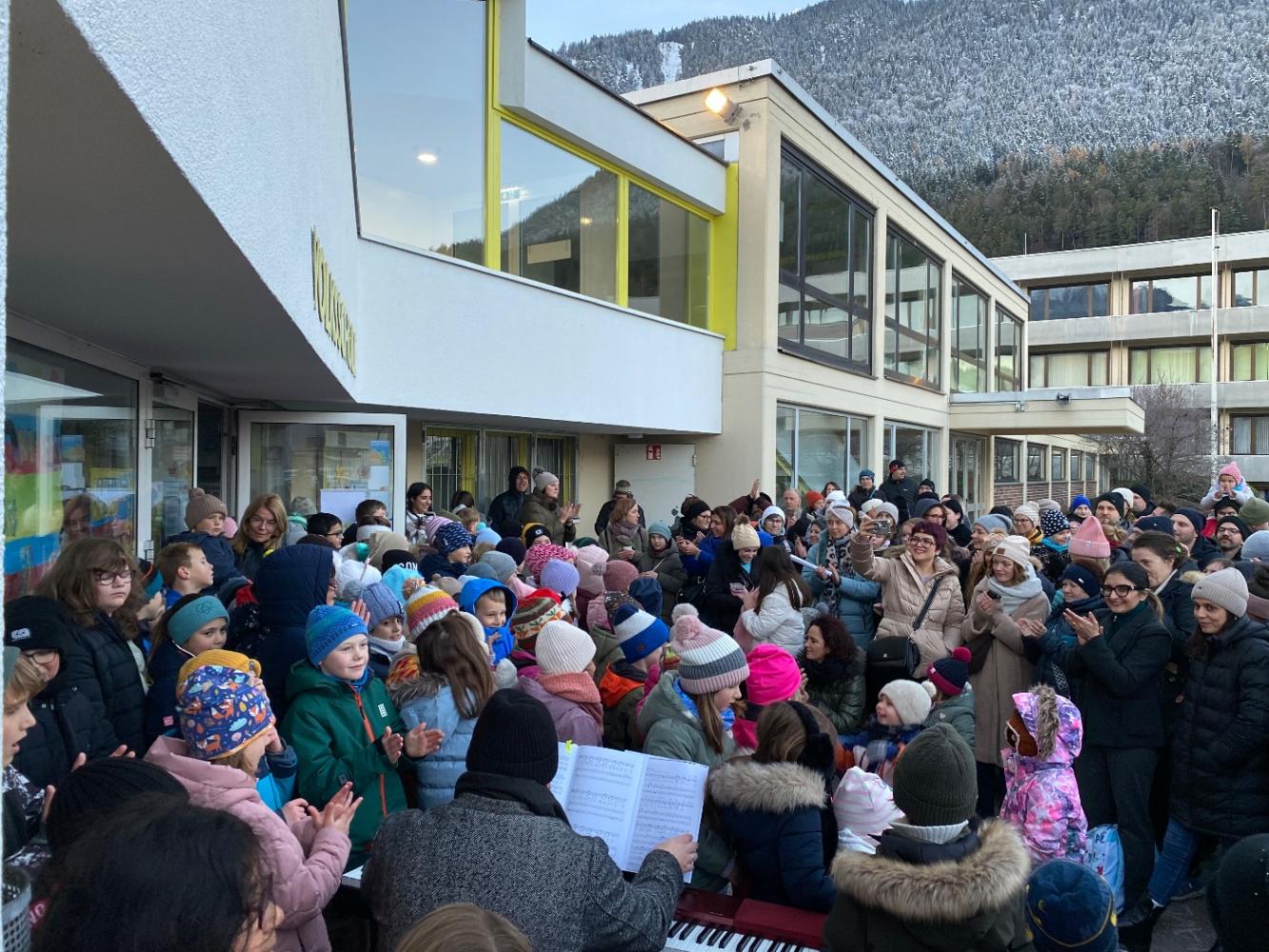 Ab 16:00 Uhr sangen alle Kinder gemeinsam unter der Leitung von Musiklehrer Arnold. Zum Abschluss trat der Lehrerchor auf und rundete den Basar feierlich ab.